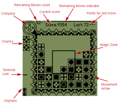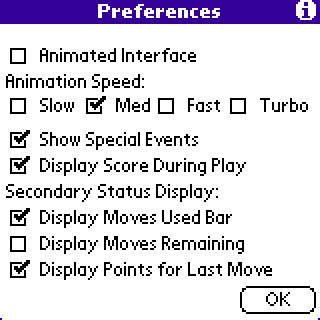 Score information, aremaining move count, and a remaining move "thermometer" indicator are displayed at the top of the screen, if you have not disabled them in the preferences.
