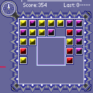 In the middle of the board is the Magic Zone. If three or more tiles of the same color or pattern are neighbors within the Magic Zone, they will vanish, clearing them from the board. "Neighbors" means that they share a common side -- diagonals don't count.